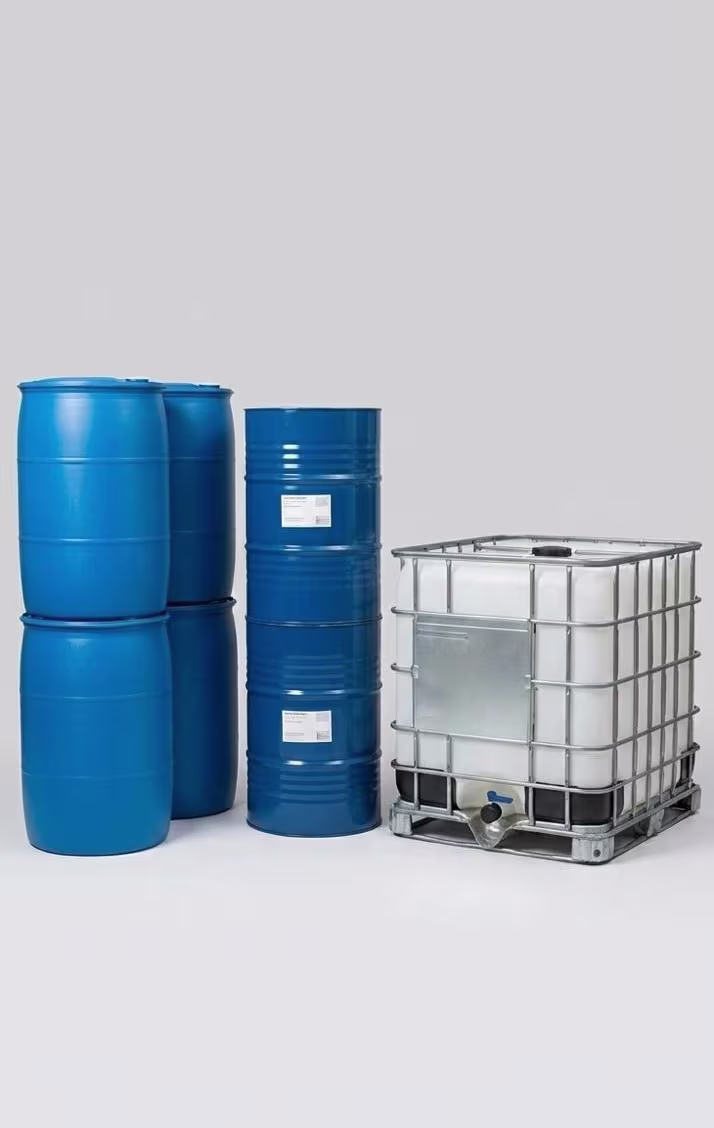 Envases de metal de 55 galones, ideales para el almacenamiento de productos químicos y lubricantes industriales.